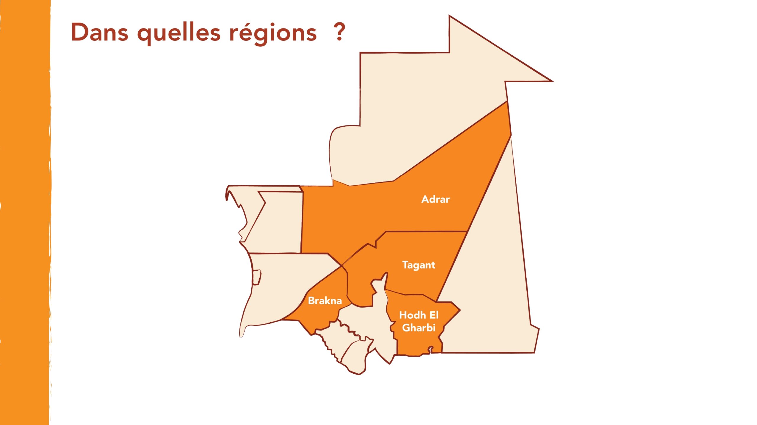 Les régions en Mauritanie concernées par ces appuis sont : Adrar, Brakna, Hodh El Gharbi et Tagant.